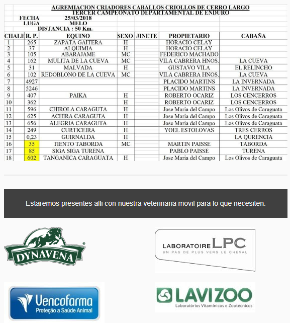 Los días 24 y 25 de Marzo Deribal estará acompañando como sponsor las actividades de la ACCCCL del año 2018, incluyendo la primer fecha del Campeonato Departamental de Enduro.
