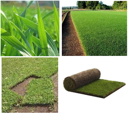 En semillas tenemos Bermuda (Princess 77), y raigrás anual (Approach) y perenne (Colosseum), pudiendo hacer plantaciones puras o mezclas según las necesidades paisajísticas o de uso en caso de canchas deportivas, también contamos con panes de césped de bermuda y axonopus.